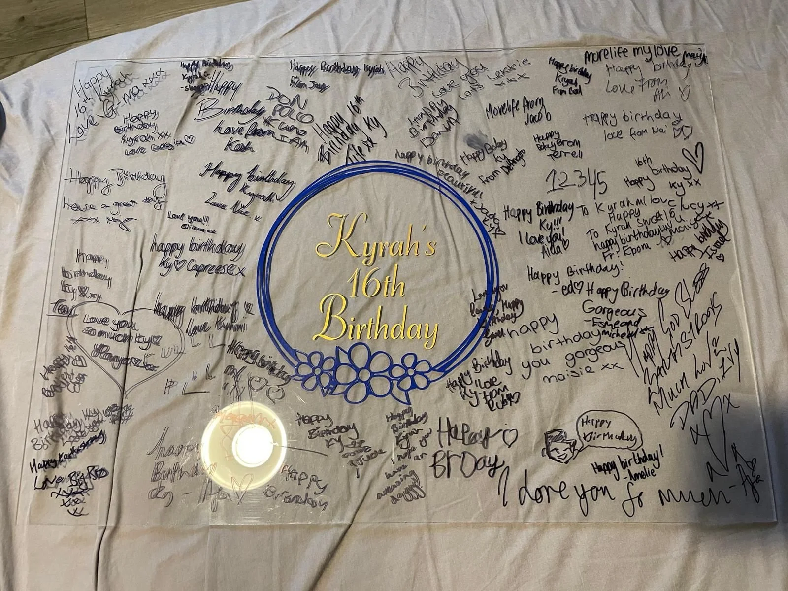 The highlight of the celebration? An acrylic welcome sign, which was an instant hit with guests. Designed specially for the occasion, the sign allowed family and friends to leave heartfelt messages and well wishes.
